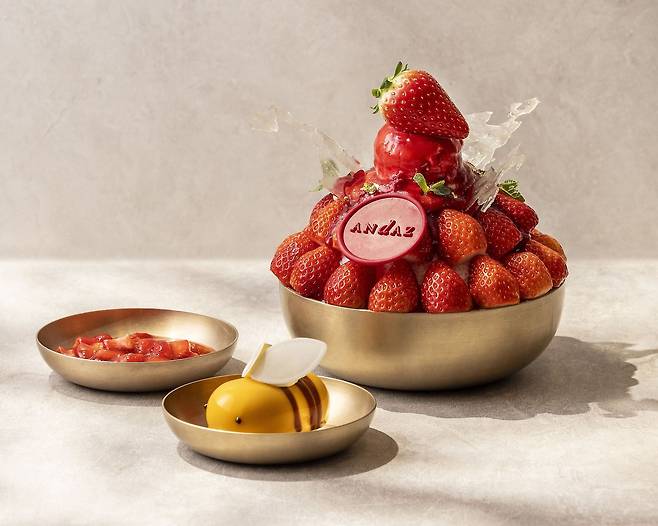 '안다즈 스트로베리 빙수'는 3월 31일까지 안다즈 서울 강남 2층에 위치한 바이츠 앤 와인에서 만나볼 수 있으며, 가격은 7만8000원이다. (문의 및 예약: 안다즈 서울 강남 바이츠 앤 와인 02-2193-1191)