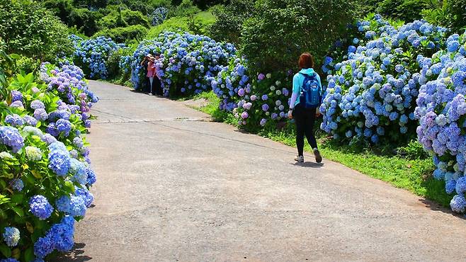 수국이 만개하는 여름이면 섬 전체가 색으로 물들고, 깎아지른 절벽과 전설을 품은 산길은 걷는 이의 마음까지 씻어낸다.