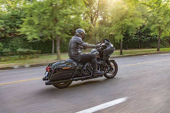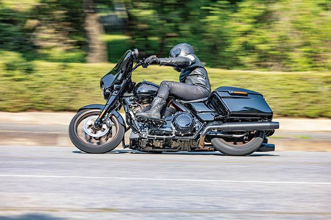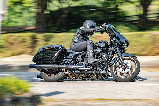 윤 : 먼저 117 큐빅 인치, 1,923cc의 엔진이 탑재된 것 자체가 인상적이에요. 할리데이비슨이 양산형으로 만드는 엔진 중 가장 큰 배기량이죠. 제 기억 속에 주행했던 일렉트라 글라이드가 1,340cc였거든요. 그만큼 시간이 흐르고 기술이 발전했다는 걸 감안하더라도 놀라울 만큼 가속력이 좋았어요. 내 생각과 동시에 딜레이 없이 차량이 움직였죠. 스로틀을 열었을 때 실제로 차가 가속되는 데까지 딜레이가 없는 느낌? 낮은 기어에서 스로틀을 비틀면 트랙션 컨트롤 경고등 깜빡이며 열심히 개입하고 있다고 알려줬어요. ‘넘치는 힘의 즐거움’이 매력적인 모델이에요. 그리고 저는 스트리트 글라이드를 위주로 주행했는데 페어링 마운트 핸들이 주는 핸들링이 익숙해서 좋았어요. 나름 군대에서 열심히 달렸구나 싶었죠. 그리고 자꾸 옛날 얘기해서 좀 그렇지만, 제동 성능은 한 네 배는 좋아진 것 같았어요.