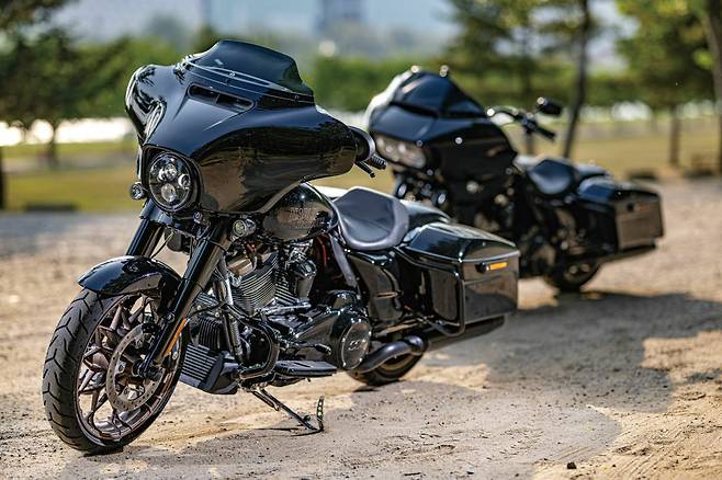 윤 : 개인적으로는 로드 글라이드의 핸들 포지션이 조금 거만한 느낌? 거들먹거리는 느낌이라서 더 매력적이었어요. 달리다 보면 어깨가 으쓱해지는 기분이 있죠. 스트리트 글라이드는 좀 더 모범생같이 차분한 느낌이고요.