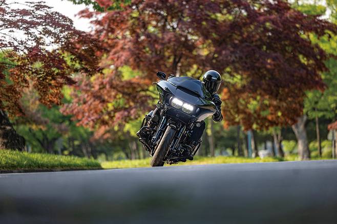 윤 : 다시 돌아와서 얘기하자면 엔진 좋고, 핸들링 좋고, 브레이크까지 좋다면 뭐가 있을까요? 게다가 일반 모델보다 뱅킹 한계가 훨씬 높아요. 그 기울기가 스포츠 바이크처럼 엄청난 수준은 아니지만 할리데이비슨을 줄곧 타왔던 사람이라면 충분히 놀랄 만큼의 뱅킹 각도를 보여주죠. 전반적으로 정말 경쾌하게 달릴 수 있고 오히려 나중에는 좀 무서울 정도였어요.