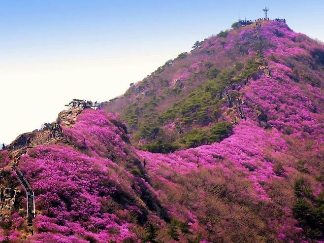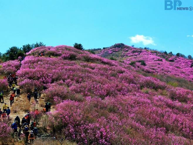 매년 3~4월이면 진달래가 장관을 이루는 이 군락지에는 높은 나무가 없어, 봄이 선사하는 화려한 풍경을 온전히 감상할 수 있다.
