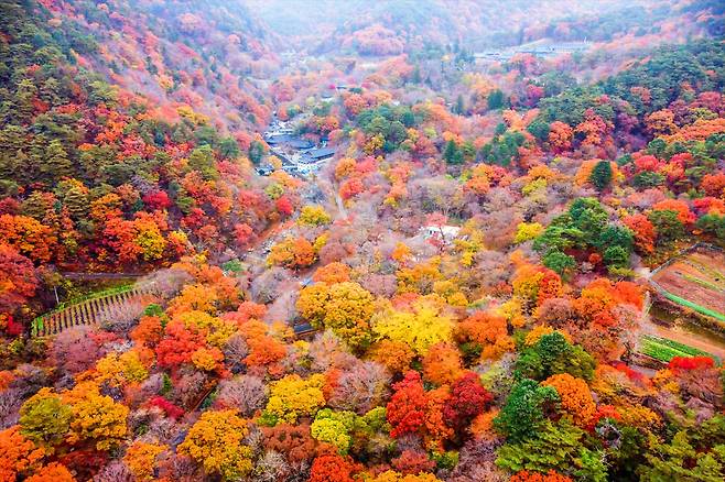 하늘 아래 끝없이 펼쳐진 단풍나무들이 장관을 이루며, 해외에서도 주목받는 단풍 명소 중 하나입니다.