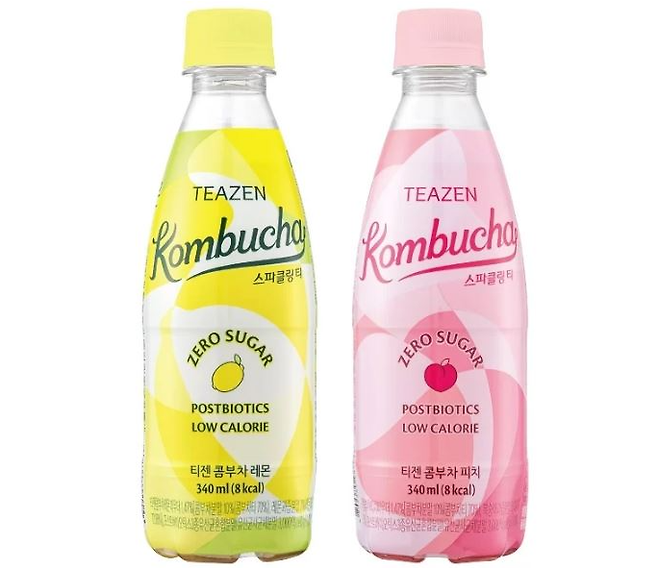 지난 3월에 출시된 ‘티젠 콤부차 스파클링 티’는 한 병 기준 8kcal의 저칼로리 음료로, 청량감이 두드러져 칵테일이나 하이볼 등을 만드는 데에 활용하기도 좋다. 맛은 레몬과 피치 두 종류.