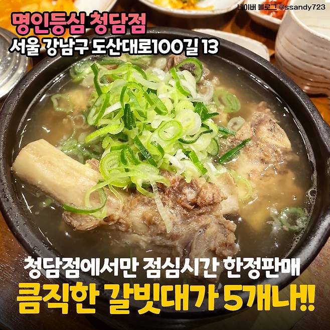 마지막으로 소개해 드릴 곳은 <명인등심 청담점>이에요! 콕 찍어 청담점이라고 붙인 이유는 청담점에서만 점심시간 한정으로 100그릇 딱 판매하는 메뉴가 있기 때문이에요. 바로 이곳 대표메뉴 중 하나인 <명인갈비탕>~☆