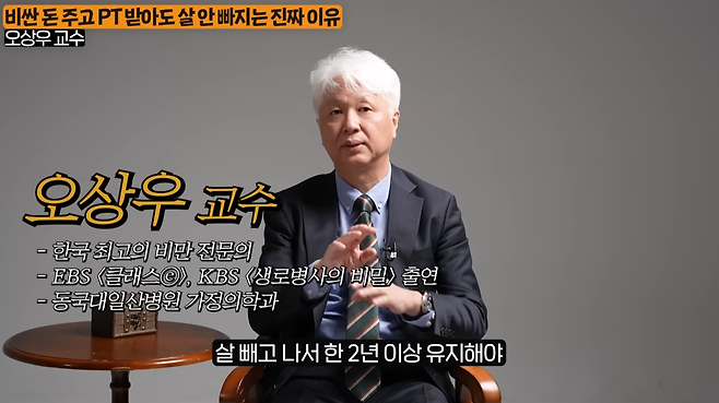 한국 최고의 비만 전문의로 꼽히는 오상우 교수는 유튜브 채널 ‘지식인사이드’에 출연해 다이어트의 핵심은 감량이 아니라 ‘유지’에 있다고 강조했다. 단기간에 살을 빼는 데 성공했더라도 이를 꾸준히 유지하지 못하면 의미가 없다는 것이다. 그는 특히 중장기적으로 건강을 지키며 체중을 안정적으로 관리하는 방법에 대해 실질적인 조언을 아끼지 않았다. 아래는 오 교수가 방송에서 밝힌 주요 내용이다.