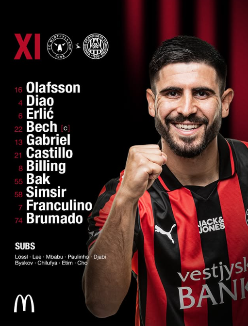 승리를 노리는 미트윌란이 ‘코리안 듀오’ 조규성과 이한범을 모두 선발에서 제외했다. 미트윌란은 브루마두, 프란쿨리노, 심시르, 박, 빌링, 카스티요, 가브리엘, 베흐, 에르리치, 디아오, 올라프손을 선발로 투입한다.
