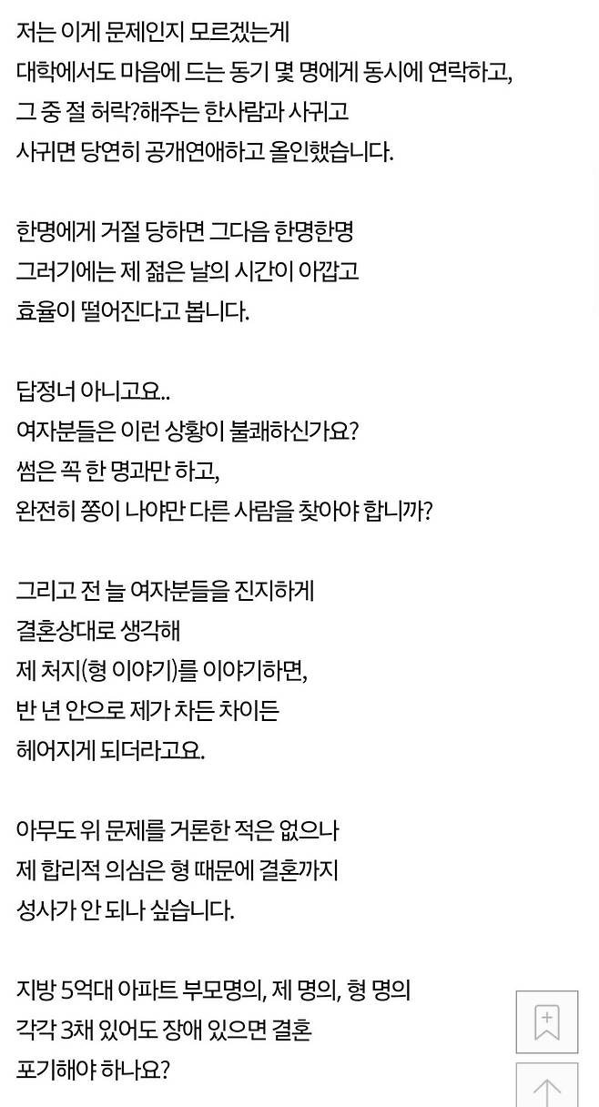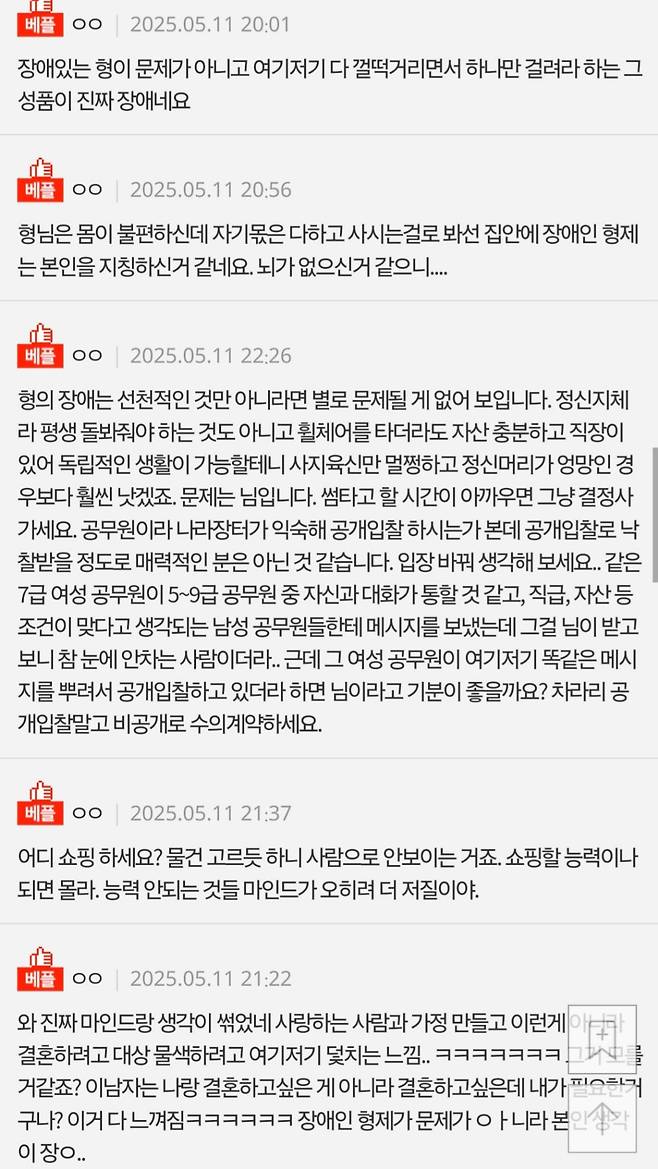 결혼/시집/친정 - 댓글부탁해 : 안녕하세요? 여성분들의 의견을 구합니다. 저는 7급 공무원으로 27세 남자입니다. 31세 휠체어타는 형(직업 있음)이 있고, 부모님 형편 넉넉하십니다. 여성분들은