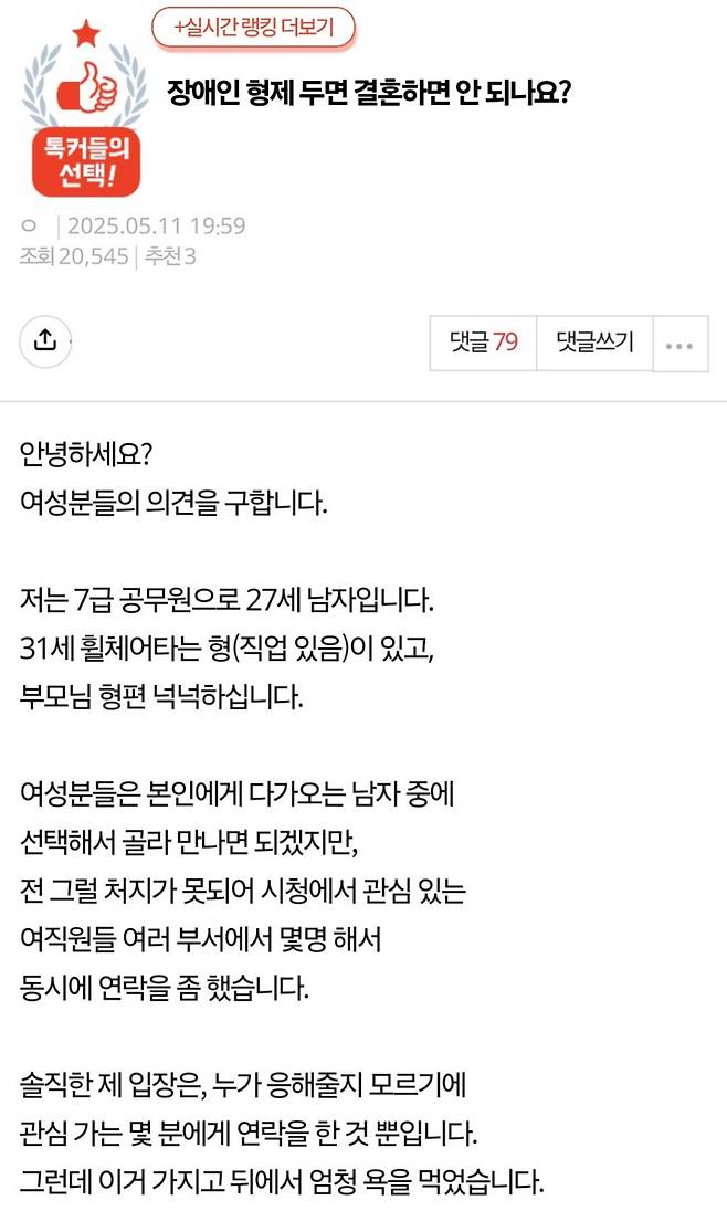 장애인 형제 두면 결혼하면 안 되나요? | 네이트 판