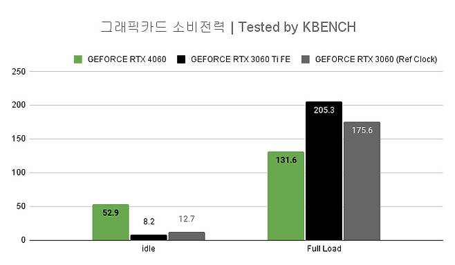 앞서 온도에서 언급한 타사 RTX 3060도 idle 소비전력이 조금 높았지만 RTX 4060 만큼은 아니었다.아무래도 필자가 받은 샘플에 문제가 있거나 조합한 시스템과의 궁합에 문제가 있는 것 같다.