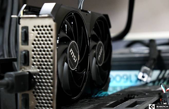 지포스 RTX 4060은 파운더스 에디션이 없는 모델이라 엔비디아가 제공한 리뷰 샘플을 사용하였다. 해당 모델은 MSI 제품이며 MSRP 모델, 즉 레퍼런스 모델 보다 부스트 클럭이 30Hz 높게 세팅된 OC 모델였다.