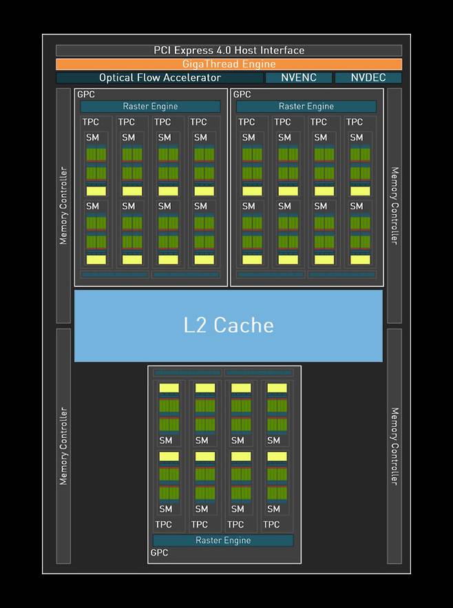 지포스 RTX 4060에 사용된 AD107 GPU 블럭다이어그램