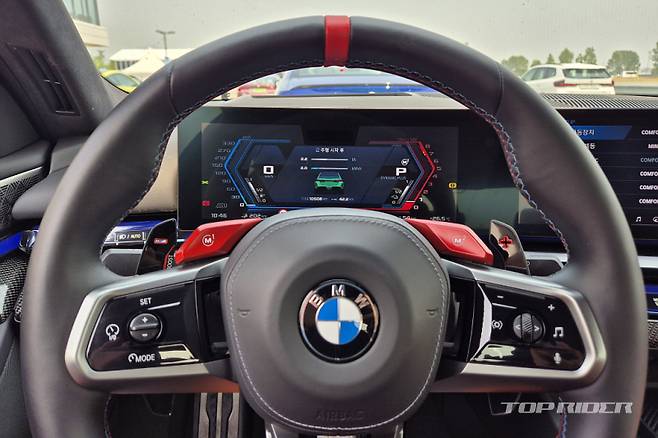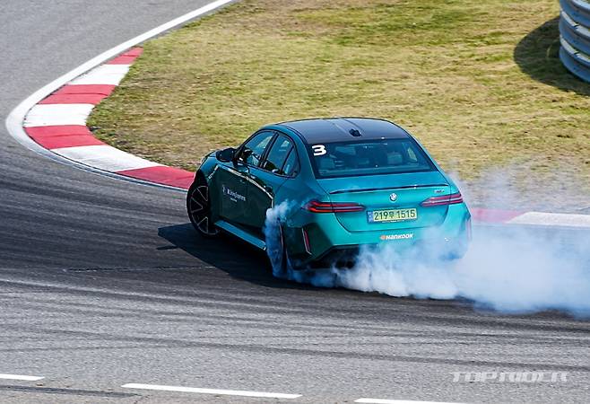 신형 M5의 택시 드라이빙에서 전해지는 특별함은 편안함이다. 좁은 BMW 드라이빙센터 서킷을 풀가속, 풀제동, 드리프트로 이어지는 가혹한 주행에서도 동승자들은 편안하게 즐길 수 있었다. 특히 후륜 조향이 기본으로 적용돼 쿠셔닝이 강화된 시트와 함께 편안하게 퍼포먼스를 전한다.