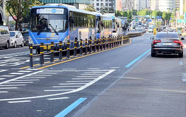 도심 버스전용차로는 대부분 푸른색 차선 표시로 구분되어 있지만, 교통량이 많아 순간적으로 차선을 잘못 선택할 수 있어 항상 주의가 필요합니다.