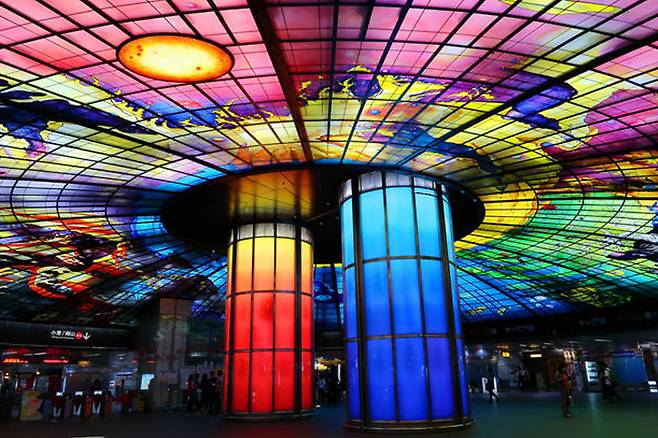 가오슝에서 가장 아름다운 지하철역으로 손꼽히는 미려도역은 환상적인 예술 공간입니다. 역 내에 설치된 빛의 돔은 4,500개의 유리 조각으로 만들어진 예술 작품으로, 마치 웅장한 스테인드글라스를 보는 듯한 감동을 줍니다.