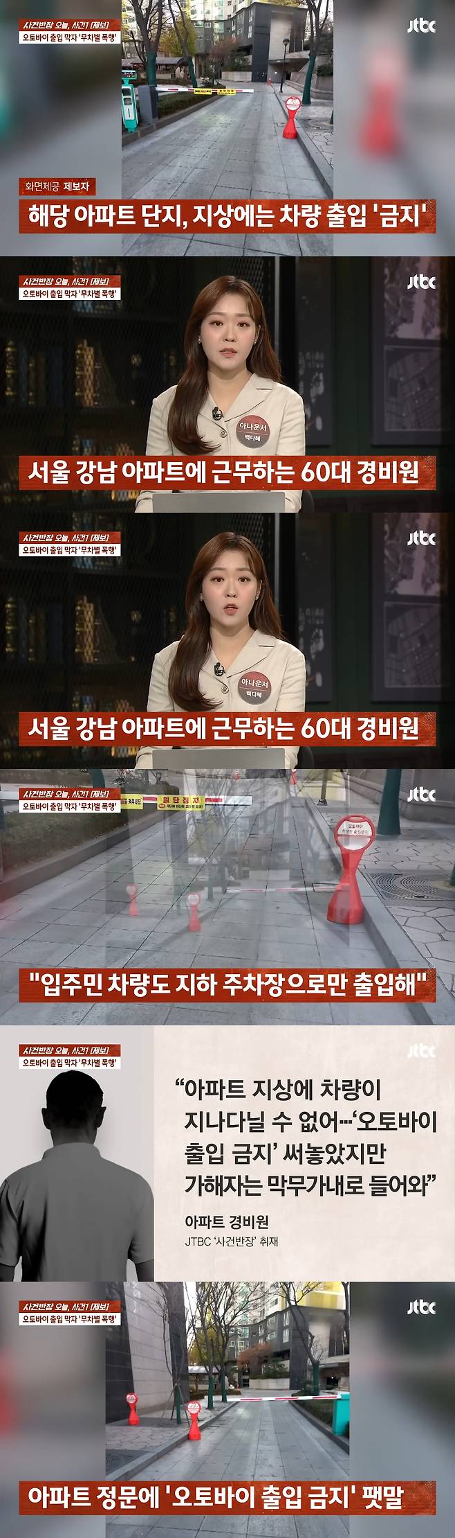 사건 당시 상황은 인근 CCTV와 목격자들의 증언을 통해 확인되었으며, 해당 배달기 사는 폭행 직후 현장을 떠났다. 경비원이 “차량 통행이 불가하다”는 원칙을 지킨 것이 이날의 사단이 됐다.