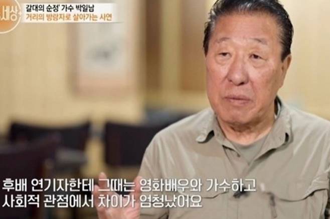 박일남은 "그때는 사회적 관점에서 영화배우와 가수의 차이가 엄청났다. 영화배우는 위에 있고 가수들은 아무리 유명해도 유랑극단 정도로 취급되는 시절이었다"라며 배우와 시비가 붙었던 일을 언급했습니다.