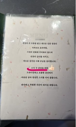 사진 속에는 ‘오직 두 분만을 위한’이라는 문구와 함께 빨간 밑줄이 곱게 그어져 있었다.