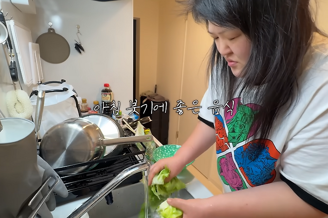 영상 속 아침 식단으로 선택한 것은 다름 아닌 양상추 샐러드였다.