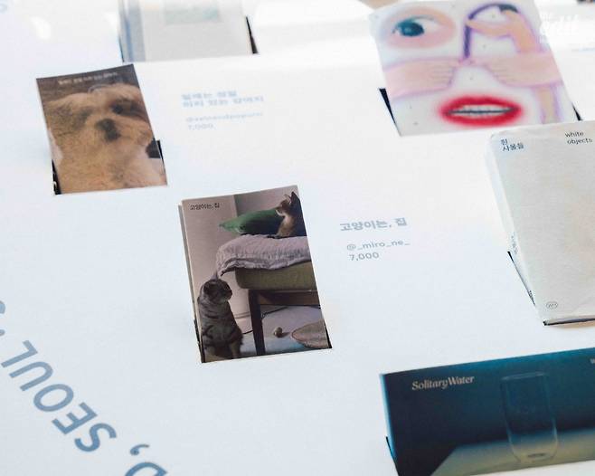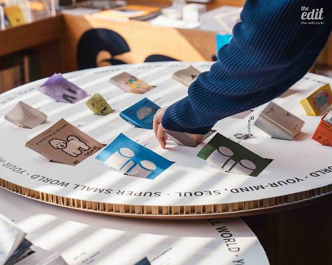 유어마인드는 테마별 기획전을 자주 선보인다. 지금은 한국의 작은 책을 소개하는 ‘슈퍼스몰월드’를 운영하고 있다. 미니북, 아코디언북, 엽서북, 키링북 등 자그마한 책들이 여기 모여있다. 작은 사이즈에 맞게 내용도 아기자기한 책들이 많았는데, 반려동물 사진을 엮어낸 책들이 눈에 띄었다. (집사 아니랄까 봐.)