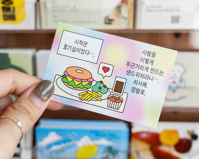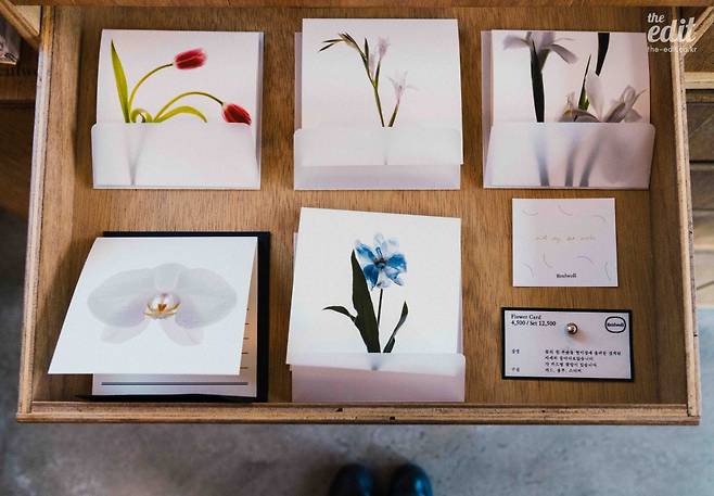 편지를 쓰는 것은 마음을 전하는 일. 북 찢은 노트에 써도 마음은 전해지겠지만 이왕 쓰는 거 예쁜 봉투에 고이 담으면 기분이 좋그든요. 글월이 선보이는 카드는 하나같이 따뜻한 감성이 담겨 있다. 기분 좋은 순간을 떠올리며 만든 ‘오후의 산보’ 시리즈와 의미 있는 꽃말을 가진 꽃을 담은 ‘플라워 카드’를 추천한다.