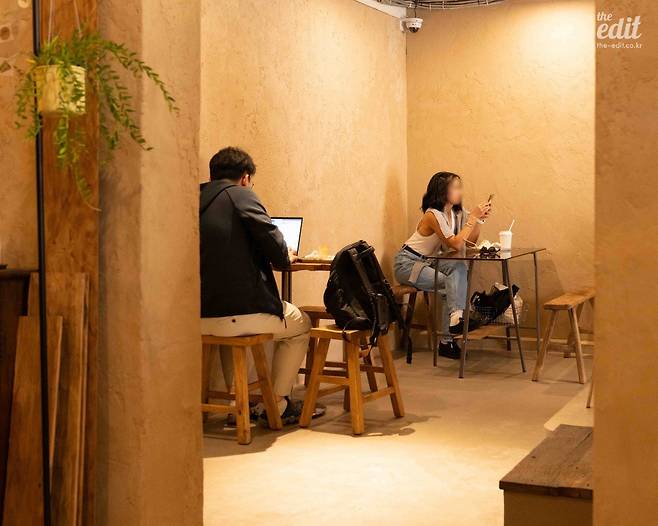 바 테이블이나 스탠딩 테이블에서 에스프레소 한 잔을 빠르게 호록 마실 수도 있고, 야외 좌석이나 실내 테이블에 앉아 시간을 보낼 수도 있다. 다만, 실내 테이블을 이용할 때는 인당 5,000원 이상을 주문해야 한다. 에스프레소 메뉴 2개를 주문하면 5,000원이 넘고, 소르베나 아메리카노를 주문하면 딱 5,000원이다.