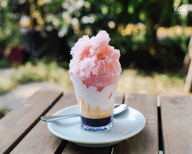 내가 주문한 메뉴는 소르베. 소르베는 매일 라인업이 바뀌는데, 내가 방문했을 때는 운 좋게 인기 메뉴인 핑크 레몬 소르베를 판매하고 있었다. 맨 밑에 진한 에스프레소가 깔리고, 그 위에는 크림, 맨 위에는 샤베트가 올라간다. 샤베트 안에는 젤리처럼 쫄깃한 레몬 필이 들어있다. 상큼한 레몬 샤베트와 달콤하고 부드러운 크림, 쌉싸름한 커피까지 작은 한 잔에서 다양한 맛을 느낄 수 있는 메뉴였다. 비주얼도 예쁘다.