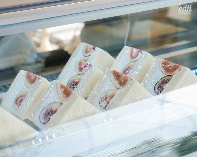 다양한 산도도 판매하고 있다. 고구마 케이크처럼 달콤한 고구마 산도, 제철을 맞은 무화과 산도, 샤인머스캣 복숭아 산도 등으로 에스프레소와 곁들이기 좋다고. 라인업은 그때그때 바뀐다.