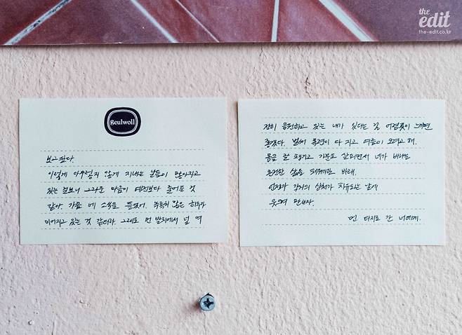 ‘여기에 뭐가 있다고?’ 싶은 허름한 건물. 계단을 오르다 보면 어색하게 놓인 화병 하나를 발견할 수 있다. 거기에 ‘글월’이 있다. 글월은 편지를 뜻하는 순우리말이고 이곳에서는 편지와 관련된 제품과 서비스를 제안한다. 한 마디로, 편지 가게다.