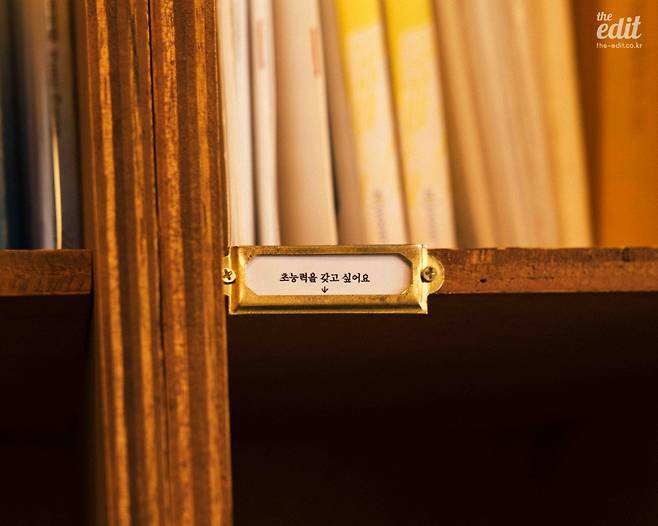 유어마인드는 책방 주인이 손수 책을 고르고 소량씩 입고하는 방식으로 운영된다. 그래서인지 고른 책에 대한 애정이 듬뿍 묻어난다. 한쪽 벽면에는 책에 대한 설명과 추천하는 이유, 인상 깊은 문장들을 적은 종이가 붙어 있고, 책장에 빼곡히 꽂힌 책 위로는 특별한 이름표가 붙어있다.