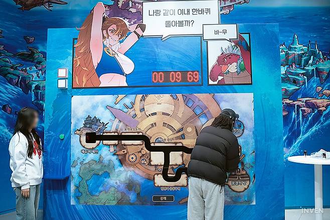 체험 이벤트들은 여기서라도 태초 등급을 획득하길 바라는 마음을 담은 '종말 펀치'를 비롯해 간단하게 루트를 이동하면 되는 '다 같이 돌자 이내 한 바퀴', 미니게임 '파핑파핑 애쥬어메인' 등 쉽게 즐길 만한 것들로 준비되었습니다. 참여만 해도 다양한 보상들이 제공되는 만큼, 유저들 역시 굿즈샵 만큼이나 이벤트에 많이 참여하는 모습을 볼 수 있었습니다.