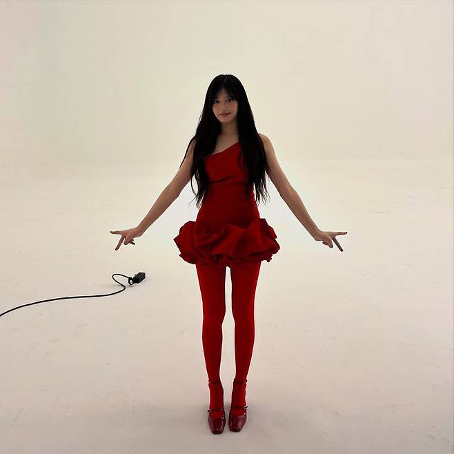 아이브 이서가 올린 한 장의 사진 속, 그녀의 존재는 찰나의 침묵을 찢고 선명하게 빛난다. 미니멀한 올 화이트 스튜디오를 배경으로, 오직 그녀의 붉은 드레스만이 무언의 시선을 사로잡는다. 드레스의 주름 장식과 비대칭 숄더 라인은 고요한 공간 속에서 역동적인 에너지를 피워내며, 보는 이의 마음에 강렬한 여운을 남긴다.