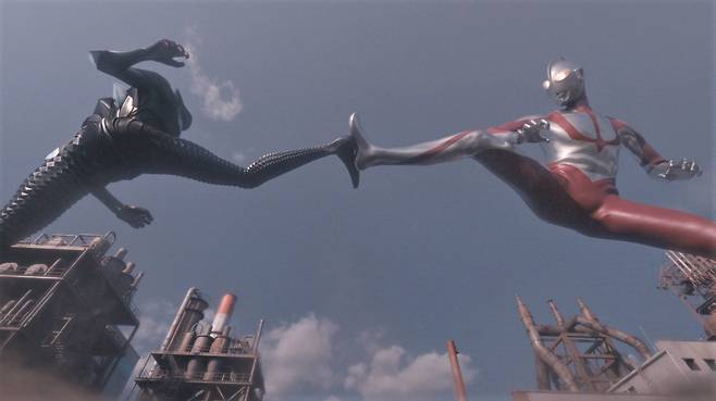 영화는 슈퍼히어로 울트라맨의 원조 시리즈를 바탕으로 한 리메이크 극장판인 영화 '신 울트라맨'이다.