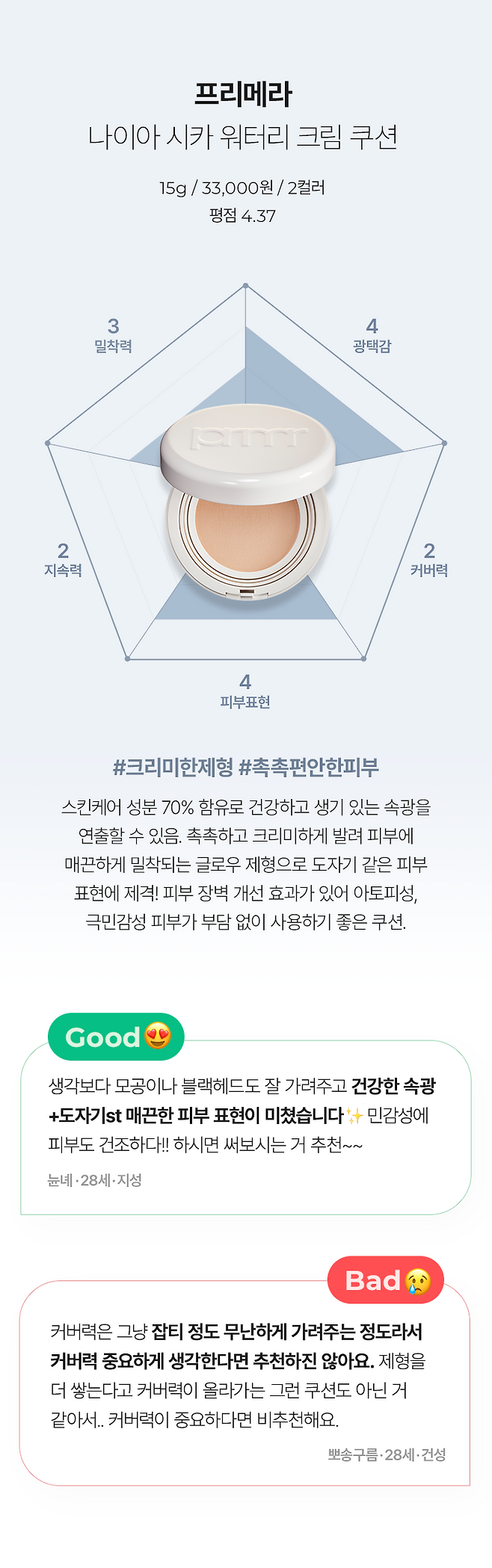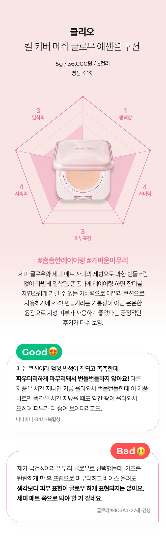 [굿올배드] 매끈한 밀착력으로 자연스러운 광을 살려주는 메쉬 글로우 쿠션. 건조한 계절에 쓸 글로우 쿠션을 고민 중이라면, 글로리들의 솔직한 리얼 후기를 확인해 보세요!
