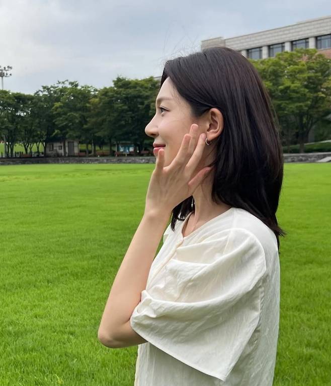 잔디밭 위에서 청초한 미소를 머금은 그녀의 착장은 자연스러움 속에 담긴 세련미가 돋보였죠.