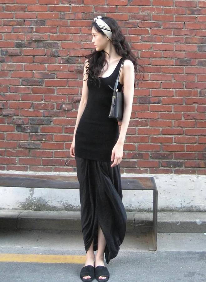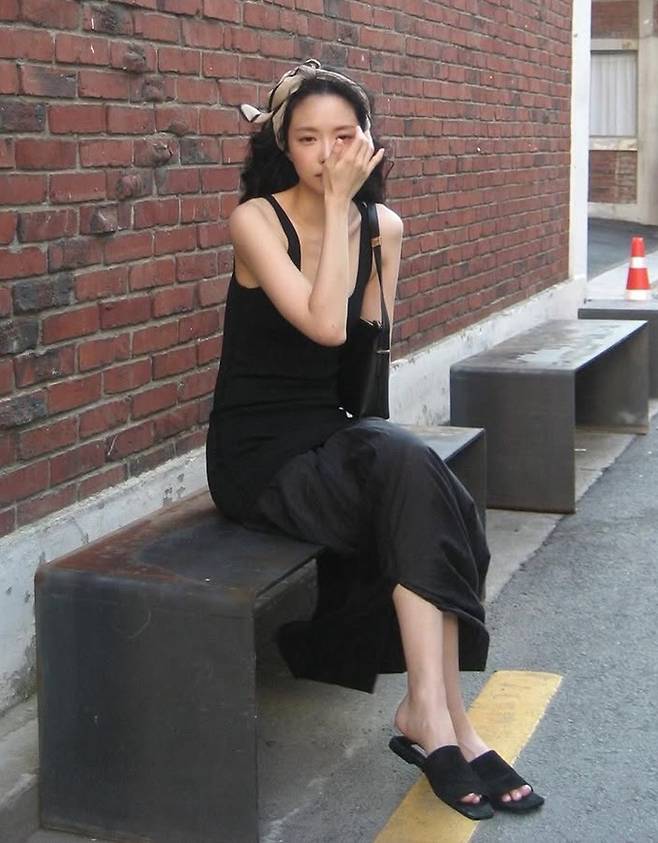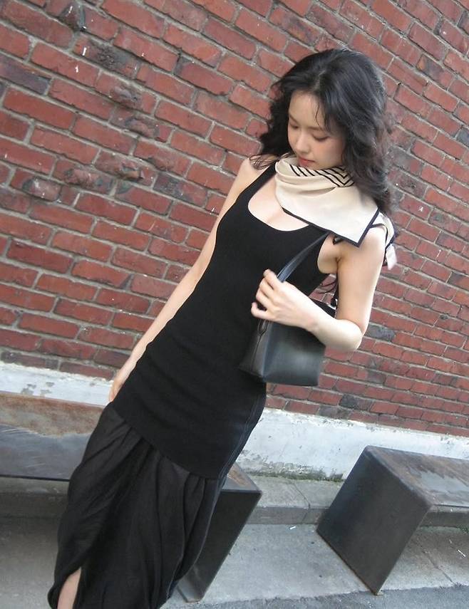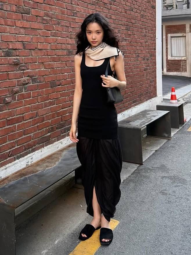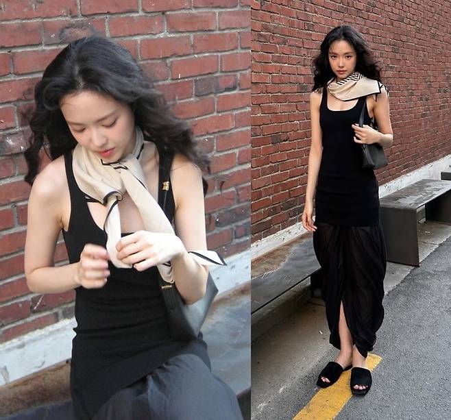 배우 손나은이 스카프를 스타일링한 나시 원피스룩으로 눈부신 자태를 뽐냈다.