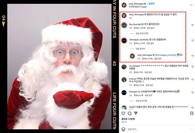 산타는 귀여운 인생네컷 사진을 올리며, 팔로잉이 0이니까 좀 심심한 것 같다고 하는데요. 이후 롯데백화점과 현대백화점의 공식 계정만 팔로우해요. 현대백화점은 플러팅이냐며 세계관에 동참했고요. 신세계사우스시티 공식 계정은 '형 나도 언팔했더라'라며 아쉬움을 표해요.