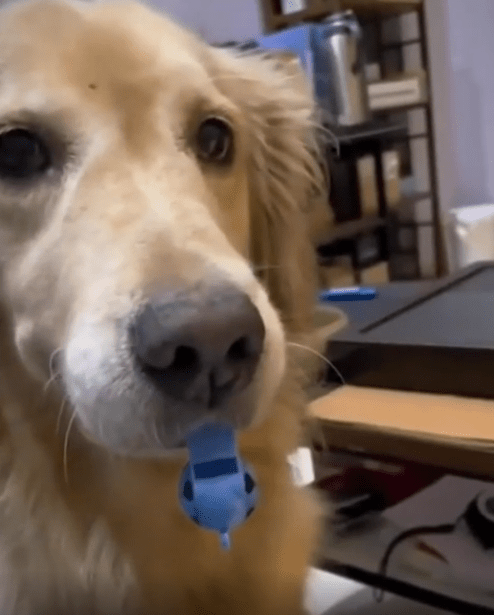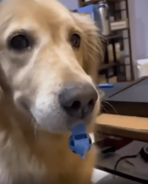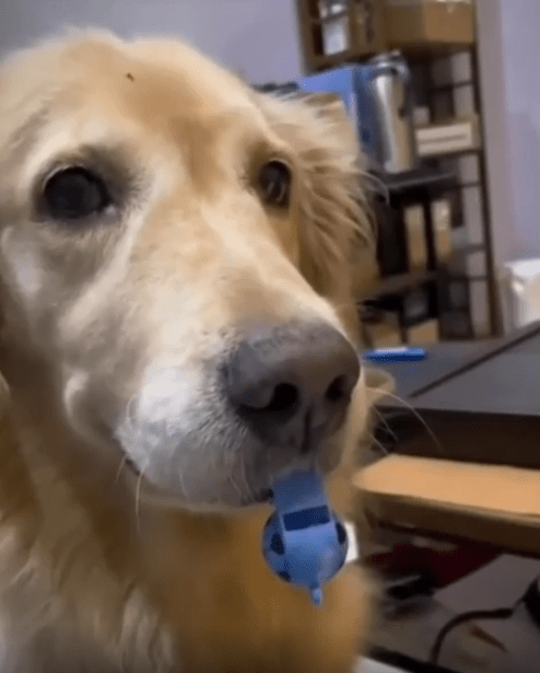 조용한 거실 한복판, 어느새 등장한 골든리트리버 한 마리. 입에는 뭔가 파란색의 기다란 물체를 물고 있었고, 한 걸음 한 걸음 아주 단호하고 또렷한 발걸음으로 다가오고 있었습니다. 바로 밥 시간이 된 거죠. 그리고 그 파란 물체의 정체는—놀랍게도 호루라기였습니다.