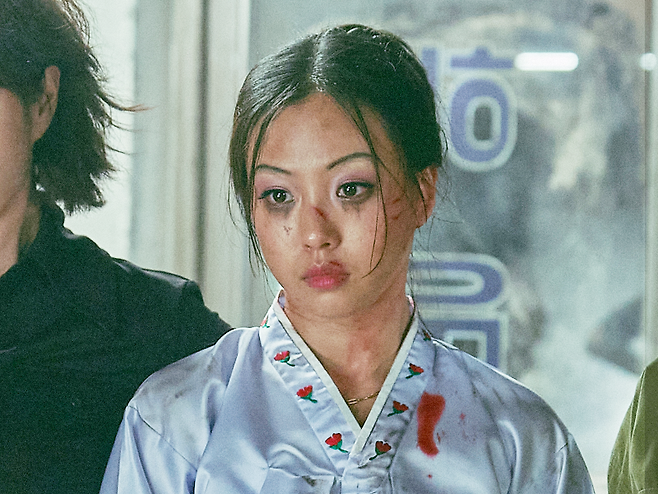 앞서 공개된 스틸컷에서 파격적인 갈매기 눈썹과 촌스러운 화장, 한복 등으로 호기심을 자아낸 고민시. 추가로 공개된 스틸컷에선 누군가를 강렬하게 쏘아보는 김혜수와 염정아 사이에서 심하게 번진 눈화장과 초점 없이 멍한 눈빛으로 서 있어 호기심을 유발한다.
