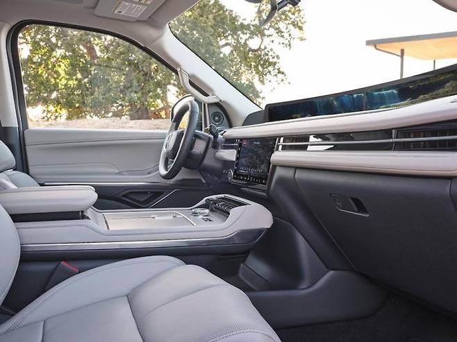 계기판부터 조수석 앞까지 대시보드를 가로지르는 이 거대한 스크린은 운전자 정보, 내비게이션, 엔터테인먼트, 심지어 주행 중 측면 뷰(깜빡이 연동)까지 모든 정보를 한눈에 보기 쉽게 보여주고, 11.1인치 중앙 터치스크린은 HVAC(공조)와 주요 기능을 빠르게 조작할 수 있도록 도와준다.