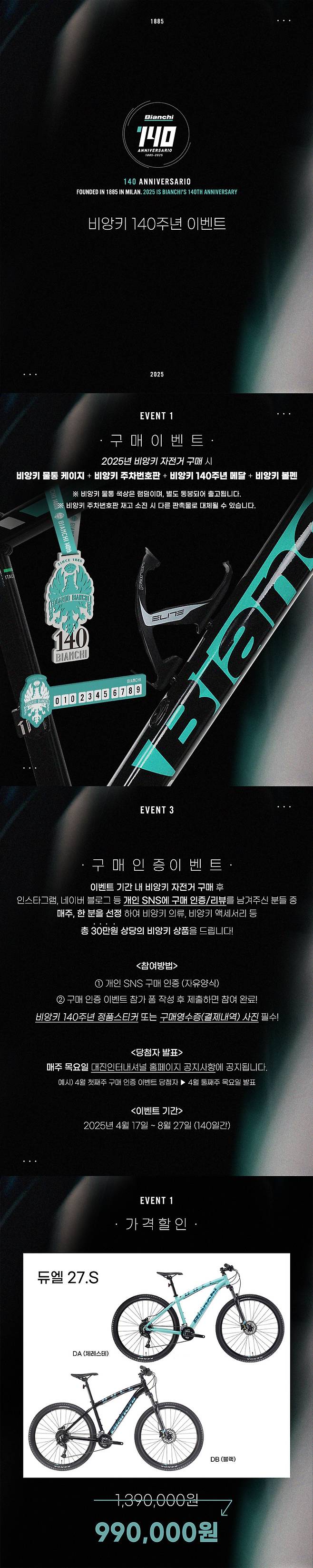 비앙키 듀엘 27S 알리비오 18단 27.5인치 올라운드 MTB 자전거