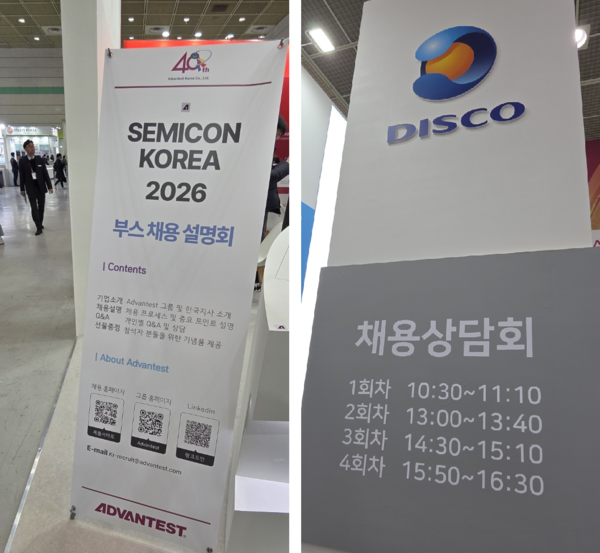 세미콘 코리아에 부스를 마련한 많은 소부장 기업은 신제품이나 기존 장비를 알리는 대신 인재 확보에 사활을 걸었다. 전시장 곳곳에 채용설명회나 상담회 진행을 알리는 안내판이 가득한 것만 봐도 이를 알 수 있었다.
