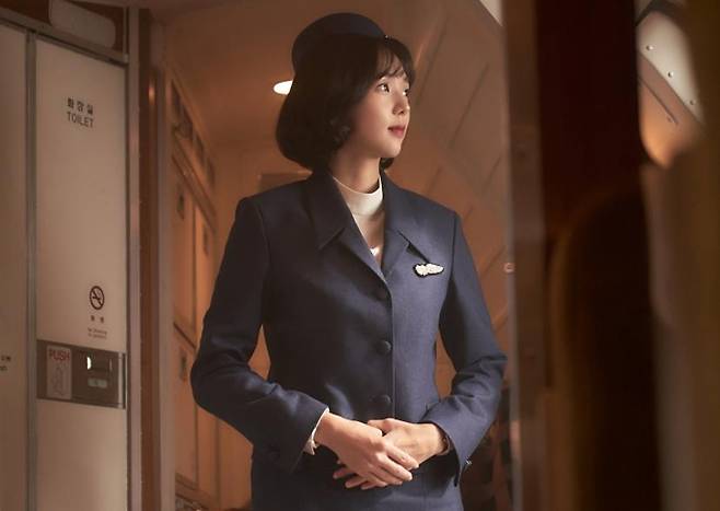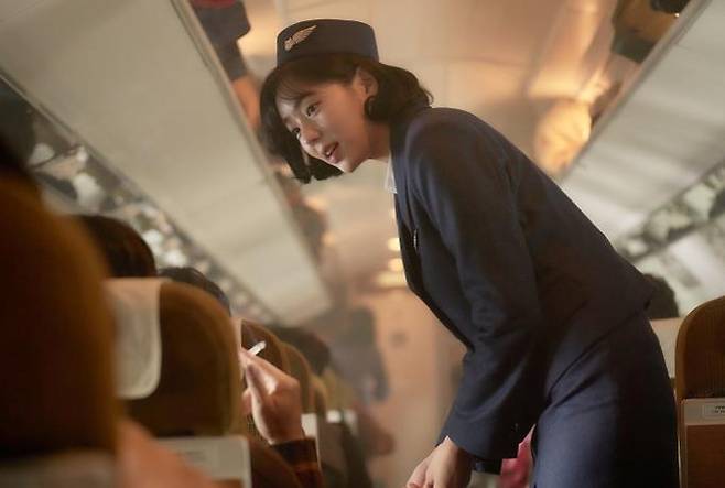 먼저 깔끔한 유니폼에 살짝 기울여 쓴 모자, 단정한 단발머리까지, 채수빈은 1970년대 승무원 그 자체인 듯한 모습으로 눈길을 사로잡는다. 더불어, 승객들을 향한 그의 초롱초롱한 눈망울과 다정한 미소는 극 중 인물이 가진 직업에 대한 애정을 엿보게 하기도.