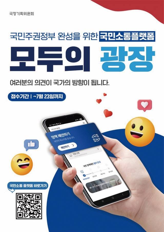 대통령 직속 국정기획위원회가 국민의 목소리를 국정에 반영하기 위해 운영 중인 온라인 국민소통 플랫폼의 이름을 ‘모두의 광장’으로 확정했습니다. 자세한 내용은 정책주간지 'K-공감'을 확인하세요.