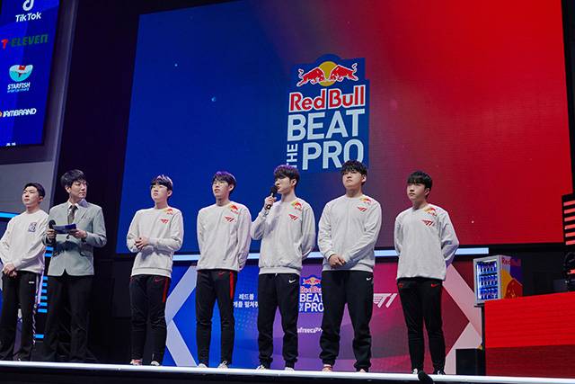 ‘레드불 비트 더 프로’는 서울 마포구 상암동 상암 아프리카 콜로세움에서 500여명의 팬들과 함께 했으며 아프리카tv 및 틱톡에서 실시간 라이브 스트리밍과 함께 진행되었다. 일반인 게이머 한 팀, 아프리카 BJ 두 팀이 ‘제우스’ 최우제(탑), ‘오너’ 문현준(정글), ‘페이커’ 이상혁(미드), ‘구마유시’ 이민형(원딜), ‘케리아’ 류민석(서폿) 등의 T1 선수와 대결을 벌였다.
