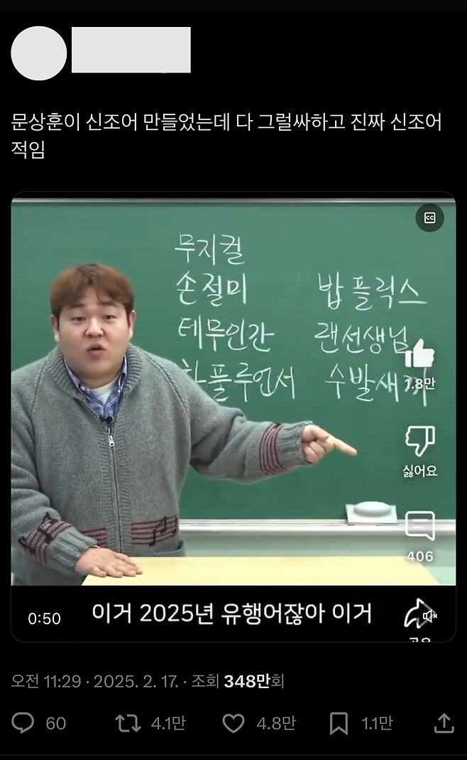 X에서도 위 신조어 영상이 무려 348만 조회를 기록하며 널리 퍼져나가고 있다고!