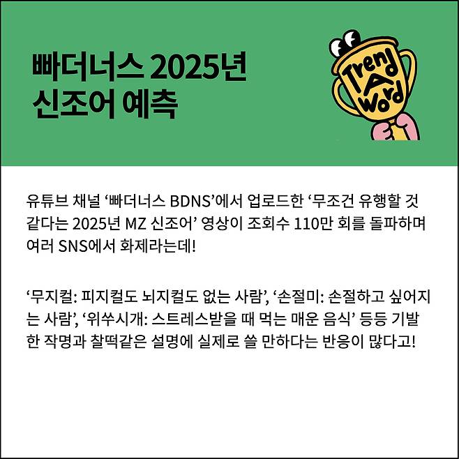 빠더너스의 ‘2025년 유행할 신조어’ 영상은 지난 2월 14일에 올라왔는데! 원본 영상은 벌써 110만 조회로 아주 핫하다고!
