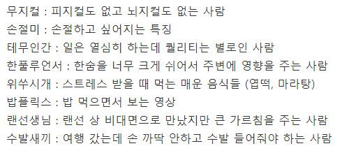 문쌤 컨셉답게 신조어의 정의와 예시를 찰떡같이 설명해 줘서 쏙쏙 들어온다. 한눈에 보기 쉽게 신조어 모음 텍스트로 정리한 것도 가져왔다.