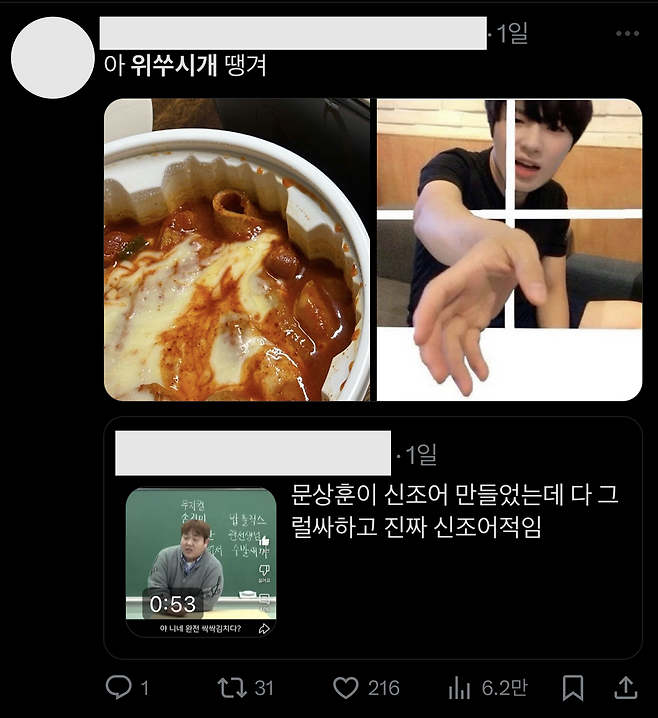 하지만 강철이 아닌 에디터의 위장을 위해 참아야겠지…! 이렇게 맛있지만 위에 큰 자극을 주는 매운 음식들을 아울러 부르는 용어를 최근에 새롭게 공개한 채널이 있다는데? 바로 우리의 문쌤 문상훈이라고! 트룹이방에서도 제보해 줬다. 젼쥰, 튜나, 께끼 고맙다!