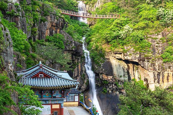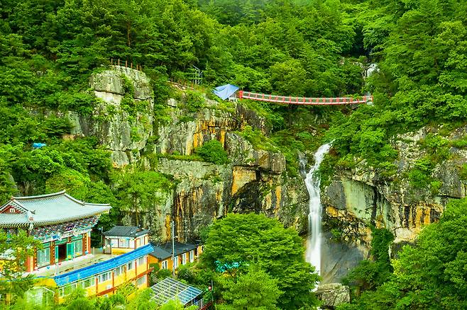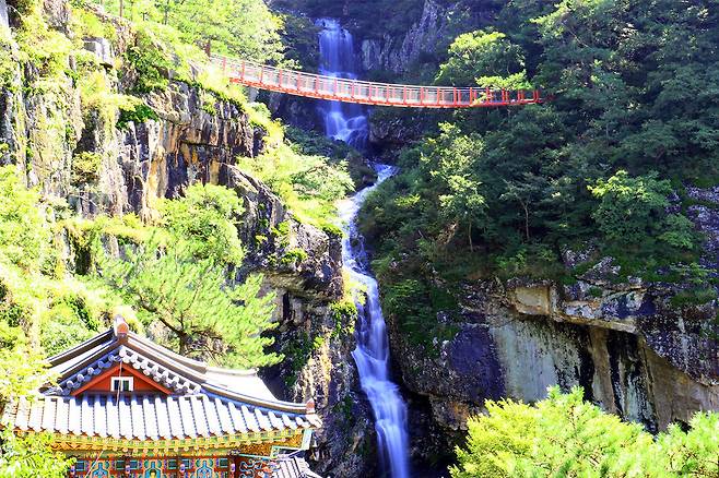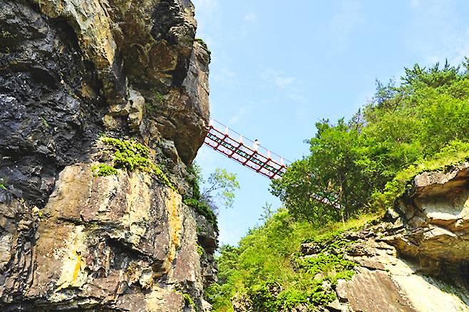 깊은 산자락을 따라 걷다 보면, 발아래로 쏟아지는 시원한 폭포와 깎아지른 듯한 절벽 위에 설치된 아찔한 다리가 모습을 드러낸다.